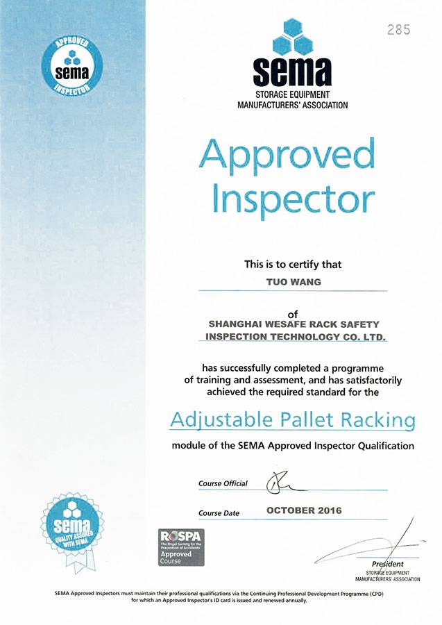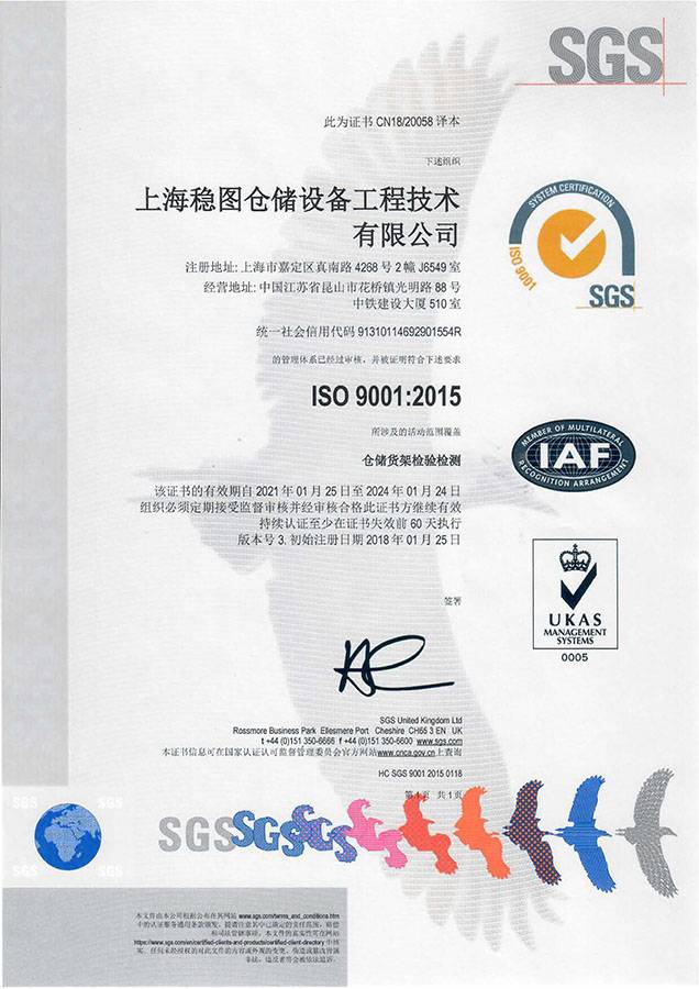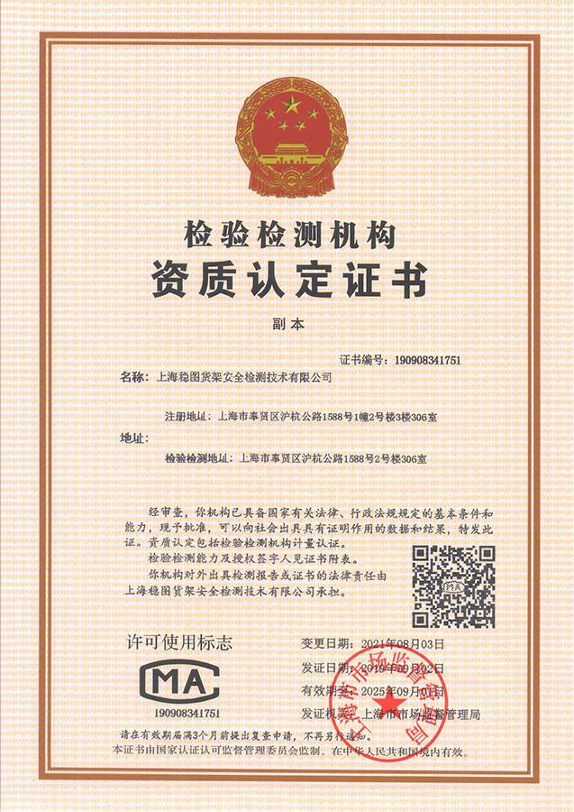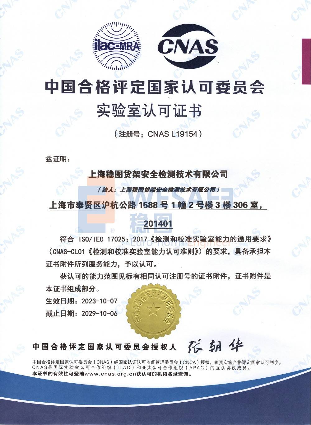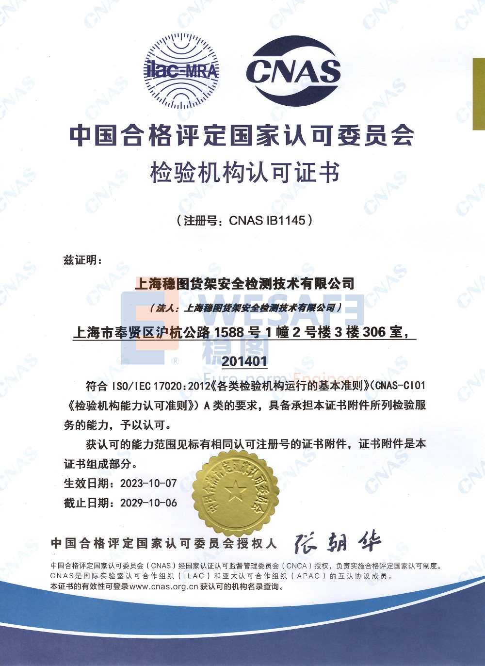 公司获得中国合格评定国家认可委员会CNAS资质(国际互认)、市场监督管理局CMA资质(国内强制)及英国仓储设备协会SEMA货架检测工程师资质(欧美澳等认可)。公司是货架工程技术服务领域的高新技术及专精特新企业。2023年稳图与中国质量认证中心、中国计量科学研究院共同完成智能仓储技术认证项目立项,为推动自动化立库系统应用发展助力。